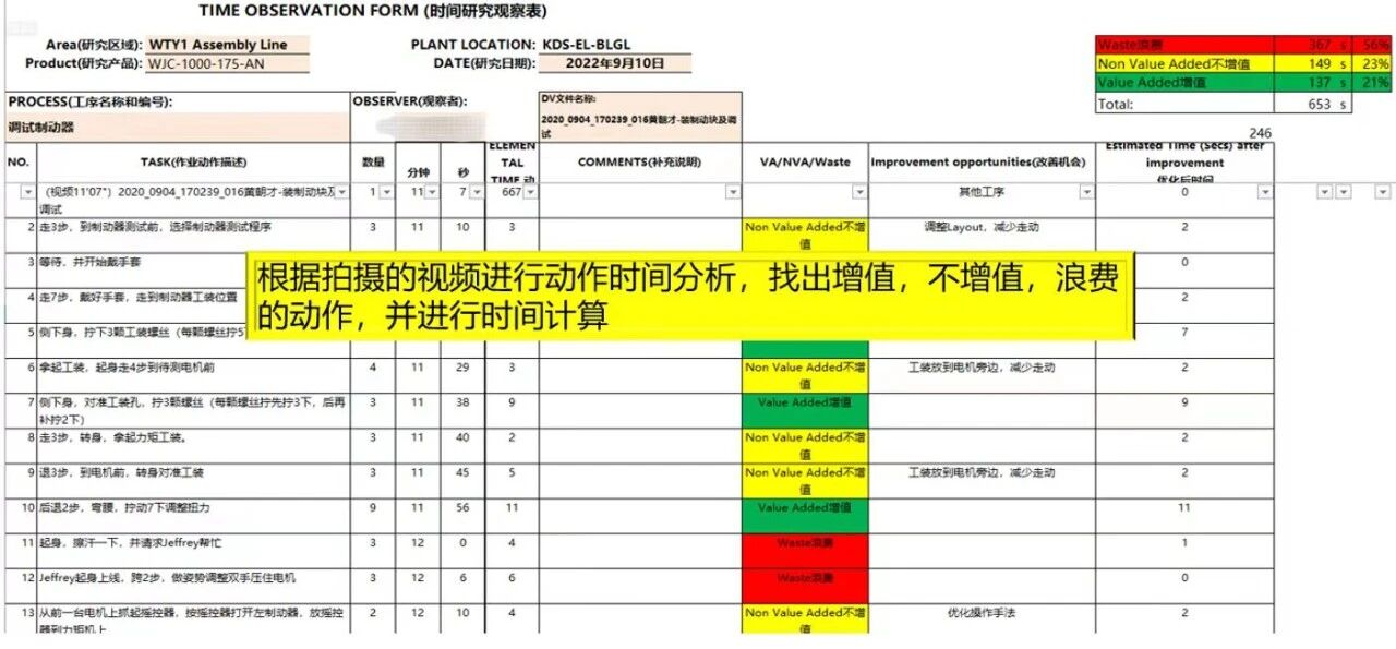 Als frühestes intern eingeführtes systematisches Verbesserungsinstrument hat die Zeitanalyse solide Verbesserungserfahrungen gesammelt. Es spielte auch eine Vorreiterrolle bei der gesamten VSM-Verbesserungsbemühungen – es diente sowohl als Fortsetzung früherer Verbesserungen als auch als Verbindung zu nachfolgenden projektspezifischen Verbesserungen. Die Verbesserungsteams beauftragten engagiertes Personal, die Abläufe der Mitarbeiter in jedem Prozess gemäß den Standardarbeitszeitgrundsätzen zu filmen. Teammitglieder und sogar Mitarbeiter an vorderster Front überprüften gemeinsam wiederholt die Videos, zerlegten und analysierten die Arbeitsabläufe und führten ein gemeinsames Brainstorming durch, um Verbesserungsmöglichkeiten zu identifizieren und Vorschläge vorzuschlagen, um schließlich einen Verbesserungsplan zu formulieren.