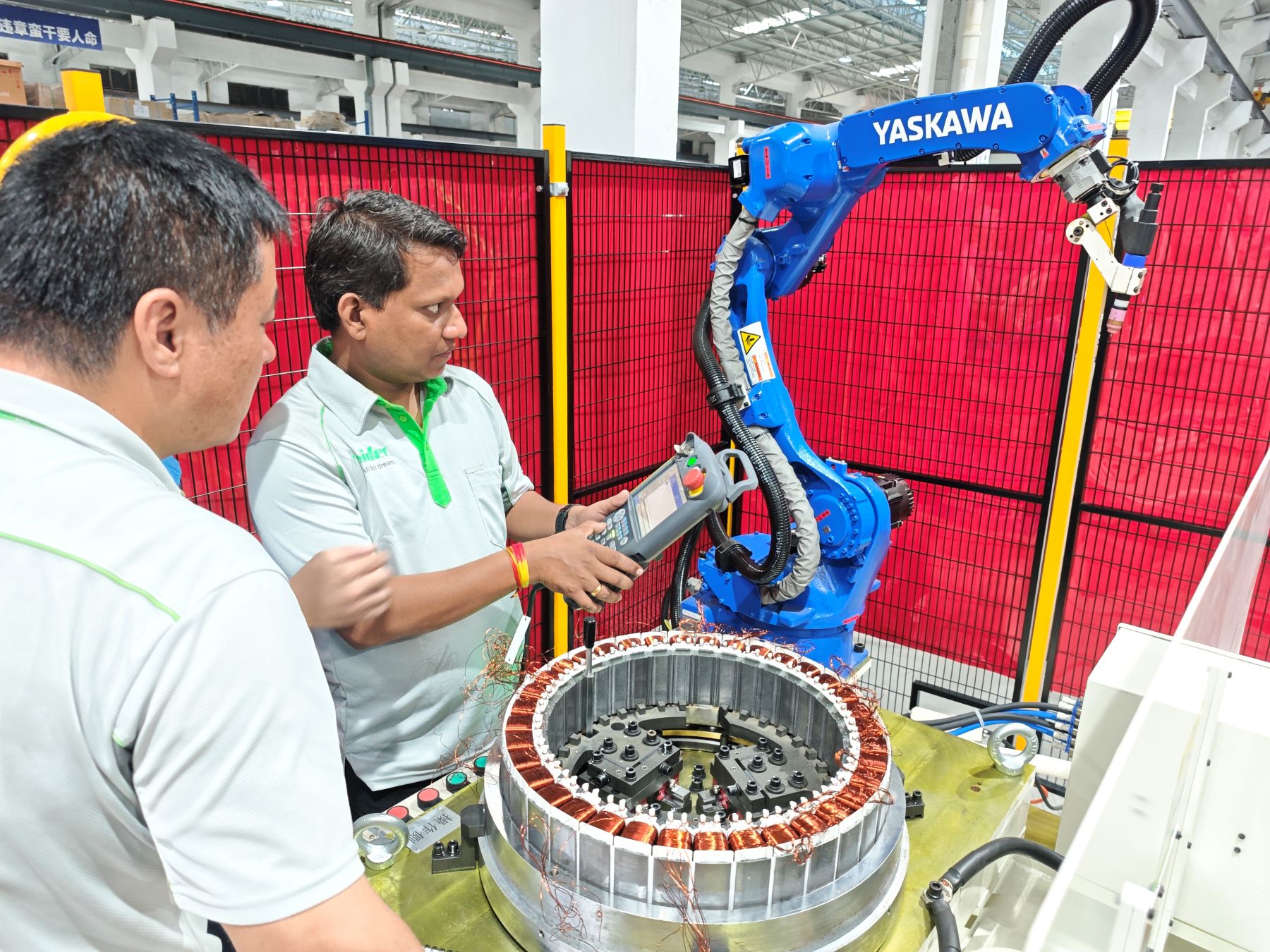 In der Produktionswerkstatt unseres Unternehmens beobachtete das indische Team die Produktionslinie der Traktionsmaschine genau. Von der Bearbeitung der Kernkomponenten bis hin zur Montage und Fehlerbehebung der gesamten Maschine lösten die wichtigsten Punkte des Qualitätsmanagements in jedem Glied heftige Diskussionen aus. Die Ingenieure unseres Unternehmens konzentrierten sich auf die Einführung hochpräziser Verarbeitungstechnologie und Qualitätssicherungsmaßnahmen im automatisierten Montageprozess. Die indischen Kollegen nickten häufig und teilten ihre praktischen Erfahrungen in der Qualitätskontrolle während der lokalen Produktion.